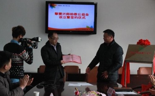 双方负责人为“擎雷兴师助教公益金”揭牌
